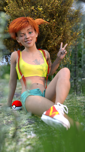 #animegirl #beautifulgirl #pokeball #pokemonfanart #prettygirl #redhead #sexygirl #denimshorts #sexybeautiful #daz3dstudio #sexyboobs #fitnessgirl #rd3d #misty_pokemon