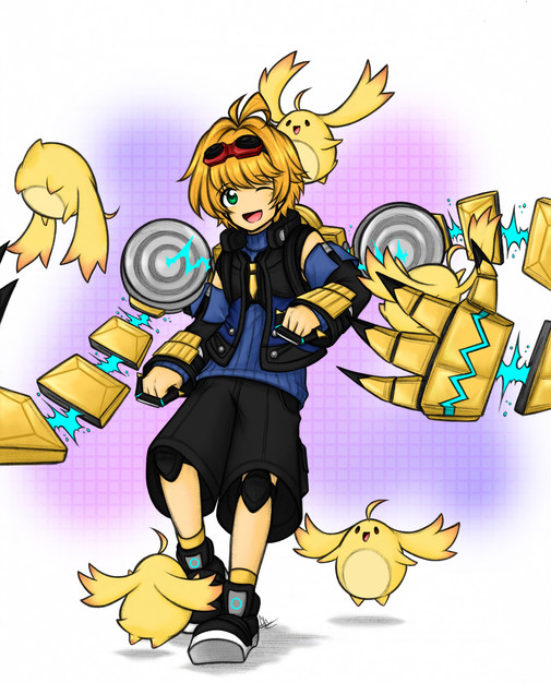One of my friends requested me to draw my Manectric and Shaymin Sky Gijinkas as a giant. But since I can't really do that.....I just surround the with a miniature city which apparently was constructed by Shay. Unfortunately, seems like Mane wasn't able to stop his roller blade dashing and.... yah.Doddled in school, scanned and then colored with some quick brushing......and the result was pretty much better than I predicted