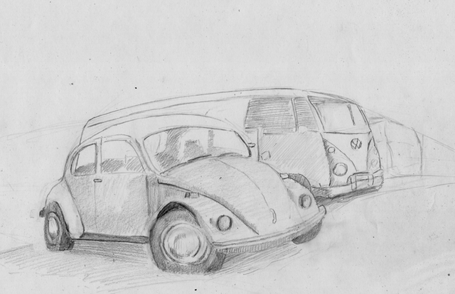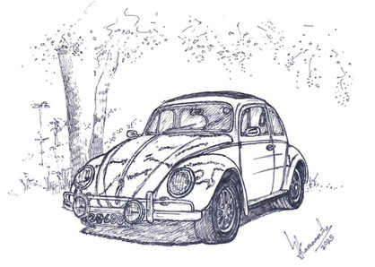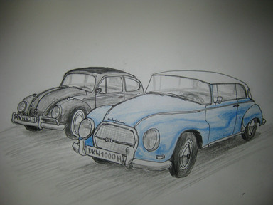 In meinem Zeichnungen und Comics sind Autos ein wichtiger Bestandteil, wobei solche Fahrzeuge wie der klassische Käfer oder moderne Beetle, oder vergleichbares wie der Volvo PV 444/544 sehr selten sind und in der Regel die meisten Fahrzeuge aus der Ära Ende 70er bis Anfang/Mitte 90er stammen, da dieses eckig kantige Design am einfachsten zu zeichnen ist.