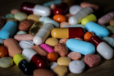 My ID over a bed of hand picked and color sorted medicamentsRelated content