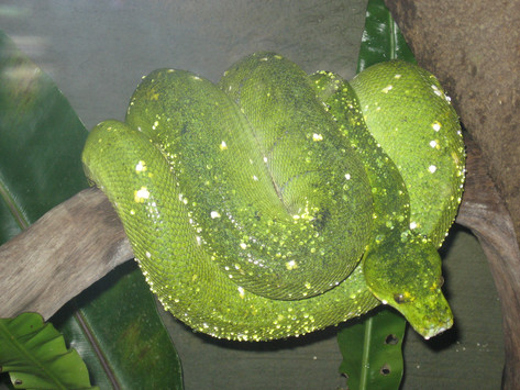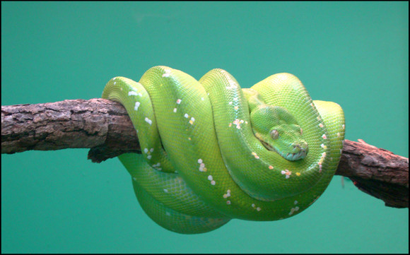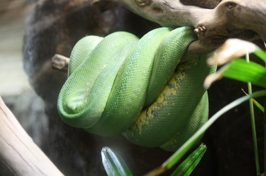 Tree python attacking a driftwood coat rack at the Toronto Zoo.Related content
