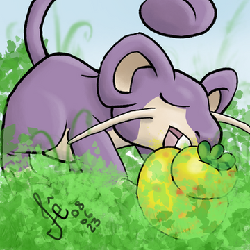 #berry #blue #color #content #cute #fanart #first #gen1 #generation #generation1 #happy #holding #kanto #mouse #normal #oran #pokemon #purple #ratatta #rattata #sketch #art #normaltypepokemon