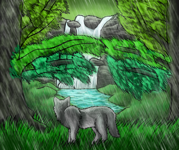 I'll start out with the background, I do love the way you did the trees and the lighting coming from behind overall. Gives a nice forest-y like feeling! The grass around the wolf's body could of had a bit more effort or more to say been more thicker around the wolf's body but other than that the background looks pretty good if I do say so!