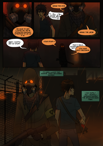 uh-huh. A lot of what you suggested is actually similar to what I was planning to do. The comic will focus around the main character, how he's had to live, what he's had to do. It will focus on inner conflict, regrets, stuff like that. This isn't just another guy running around perfectly at ease in a post-apoc world. His existence is far from perfect, and there's a lot he hides under the surface.