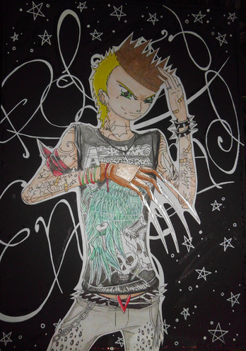 I love the skin tones and his frunky green hair!