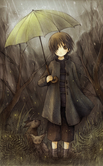 Ah! I love sad pictures! You did so amazingly! I <3 umbrellas. There is so much feeling in this picture. The textured paper is pretty epic. His hair and fingers are really awesome. ^^