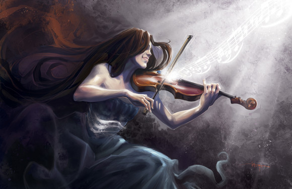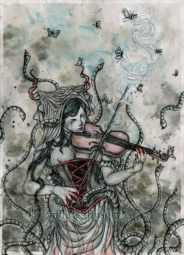 I've never been distracted from your work before but the little bit of story in the comments section kept me occupied. It's a unique concept and I really hope we get to see more of your writing as well as your art. Ah, and your Violinist is an intimidating looking gal
