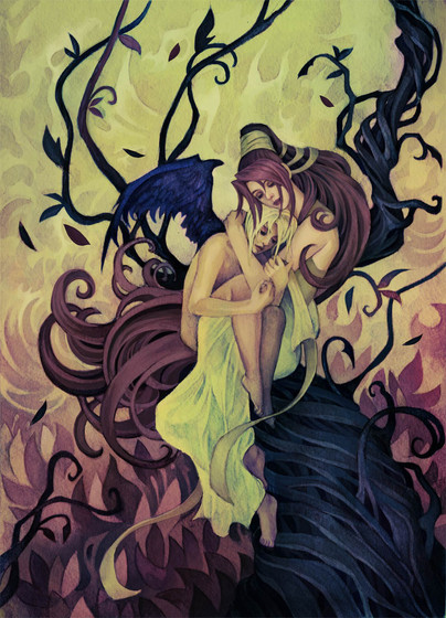 It was never clear to me in the movie, Legend, how the horn of the unicorns would give Lord Darkness power over Light.Anyway, in case no one knows who this is, that's Lord Darkness with Lily (the dark version). I've always wanted to fanart Ridley Scott's Legend. I grew up with that film and, til this day, I love the music and fantasy set-up. Tim Curry was absolutely delicious as the Lord Darkness.