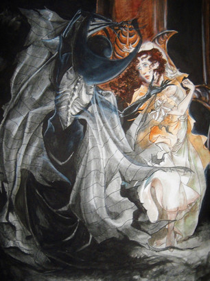 Creating this piece was a challenge. There wasn't many good sources to refer to when creating this, so I had to watch the film again and again while taking creative liberties. It's also done in traditional medium so there wasn't much room to screw-up.