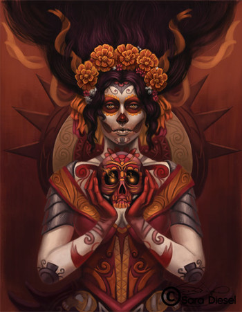 Yaaaaaaaaaaay! I got a comment from you, tee. *__* How the hell are you? Been resting since RealmsCon? Daaaaaaw, thanks for digging the pic. It makes me happy this work is being well-recieved, especially when I've given so much love and hard work to it. I'd like to make prints of this piece to sell at cons. Although, I'm unsure whether Day-of-the-Dead work will sell well at an anime con. O_o