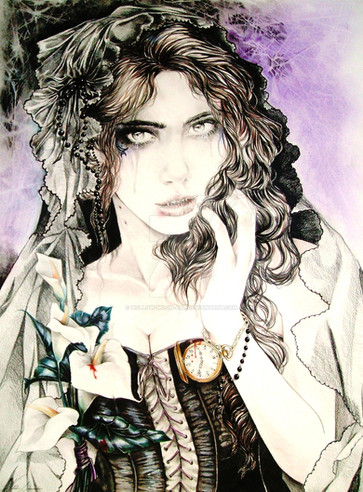 Finally got this piece done!This was inspired by various things. First, my love for Halloween and Goth-y things. Second, my reading of 'Sexual Personae' by Camille Paglia (particularly the chapter on femme fatales). Third: one of my fanfics.