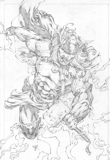 looking good bro...very dynamic work here. detail is great on thor and the robot(?). well done .