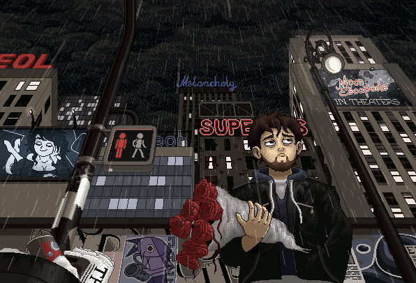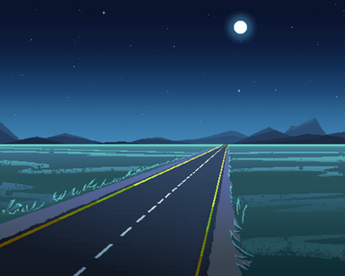 #animated #city #freeway #gif #lights #moon #pixelart #road