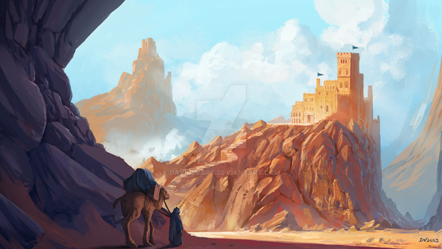 #awesome #caravan #cool #desert #illustration #imagination #landscape #landscapes #mountain #painting #pretty #rocks #sand #raedrob