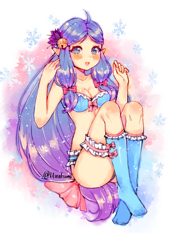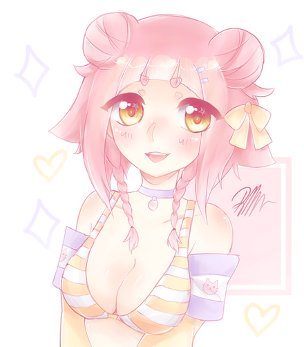 Wow, this is so good. And so cute!!! I love what you did with her hair and nice detail making the skin super rosy! Love the heart pupils and the scarf is so cool! Awesome Commission, I know the person will love it.....even if it shows loads of skin ^^,: not hating.