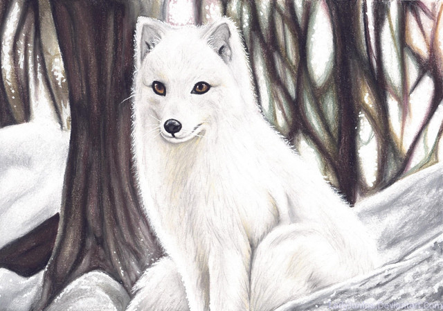 This turned out beautiful! The colours enhance each other and seem almost luminous. The background is as perfectly done as the fox itself, it is really apparent that you spent a lot of effort on this.