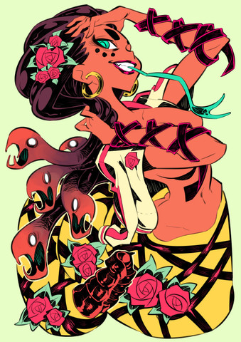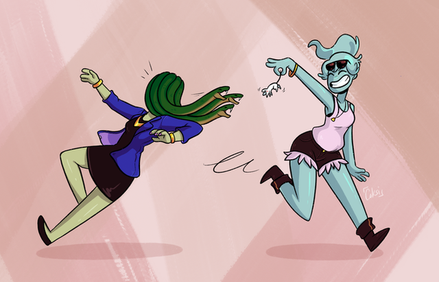 They came out and said that Pyro girl's name is Amira Rashid and she's a " Fire Djinn"(If you don't know what that is it's a Genie but one that controls fire like a fire elemental instead of grants wishes). Now I imagine that she's Arabic. It makes the parts where the 'This contains a Genie but I drink the Genie because I grant my own wishes" thing have new context. Like she thinks those genies are jerks or something.Also I know these two have a ship name but I can only think: Greek Fire.