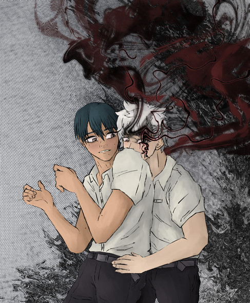 #malecharacter #digitalart #anime #fanart #portrait #digitalpainting #horror #monster #alien #bodyhorror #hikaru #redeyes #hikarugashindanatsu #thesummerhikarudied
