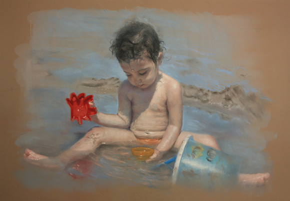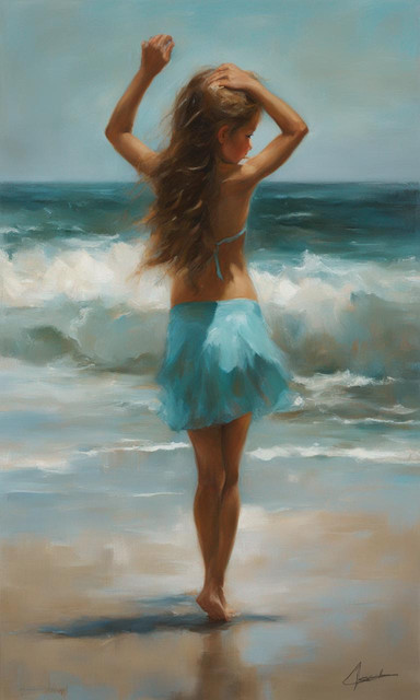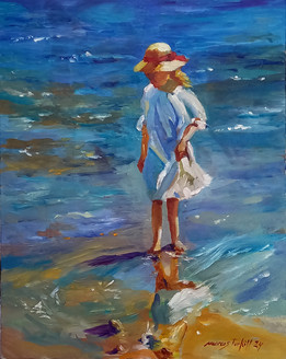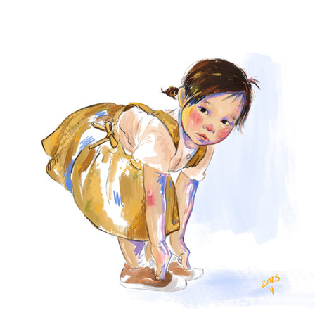 It's like a story I wonder what she is doing ... is she worried about a stain on her dress, is she counting the flowers or is she checking her feet for a mark ... I really don't want the answer I just want to share the wonder of the work