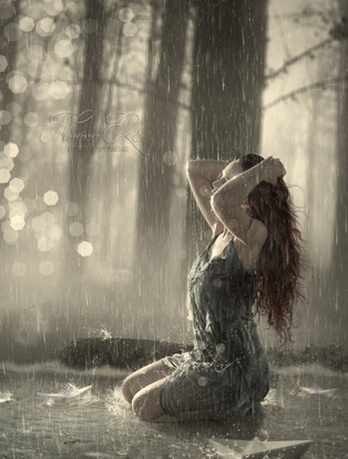 Beautifully created and blended and the subdued colour scheme, pose of the model and rain, creates (to me) an atmosphere of loss...lost opportunies and lost love represented by the hearts. The clocks are are one of my favourite symbols, which represent time that we cannot replace or go back to change decisions to prevent or change the loss. I love the swirly pavement, which adds focus to this artwork. Great work!