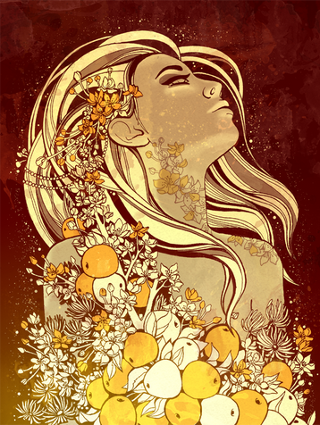 The Roman goddess, Flora, in a style inspired by Alphonse Mucha, en.wikipedia.org/wiki/Alphonse… whose work I have loved for forever.Stock Credits: