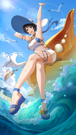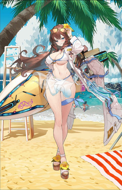 She used her 'try until you succeed' stubbornness and learned how to surf despite her nearly non-existent athletic skills. Sohee is no longer a scientist cooped up in her room doing research and lacking vitamin D, but a strong and powerful one who can wield her modded Magiton Buster surfboard freely. Why would she swing her surfboard around on the beach, nobody knows. Sohee's surfboard is equipped with a Magiton pack, and it quite frequently creates huge waves out of nowhere causing other surfers to wipe out.