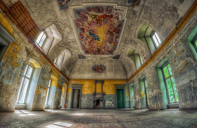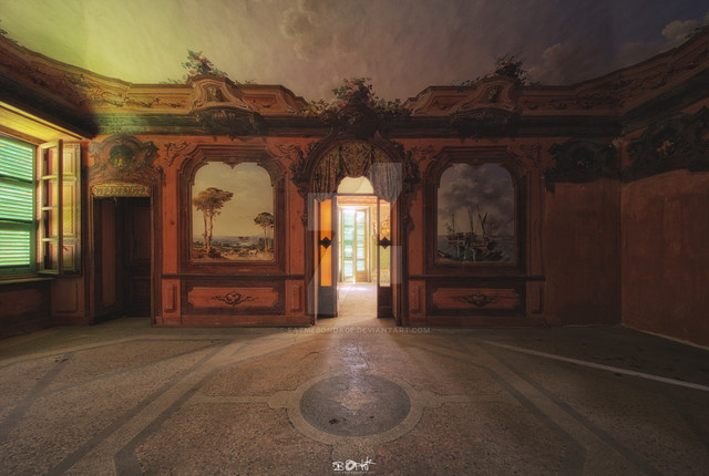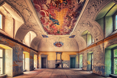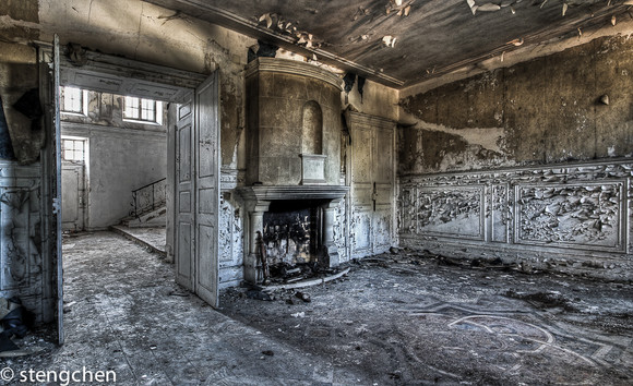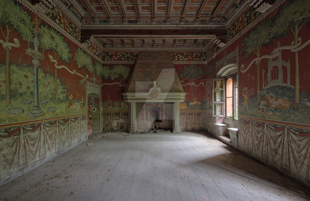 Incredible. We only have a few structures of this type in the states, one I visited recently is the Biltmore Estate in North Carolina. Very European inspired, and its amazing to see the old world version captured like this. Much like Biltmore, this castle appears to have hand carved ceilings, fireplace mantle and hand painted wall murals. I'm glad to know some of these buildings are preserved, some restored as well. I'm sure in its time it was truly a magnificent visage and hosted some very prominent people. I love to imagine the ghosts and echos of the past talking and walking around the room. Magnificent. Great shot.