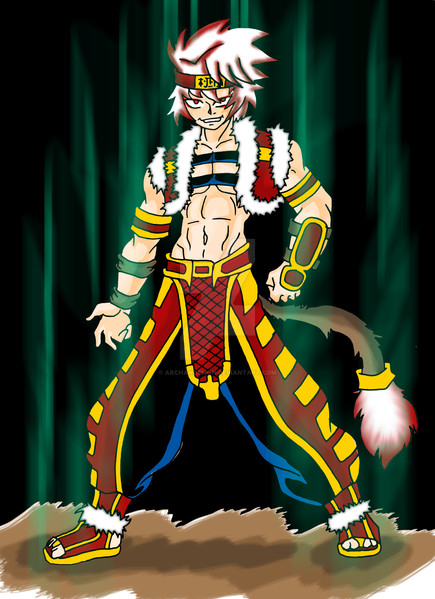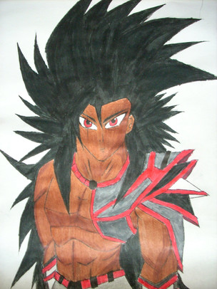 Making his first debut! Beast Rage's form, this isn't his standard form, drawing style is from Negima.Like I said this isn't Beast Rage's standard form, Rage's appearance in the magic world had an effect on him on which Dark-Rage and Beast Rage will get a different appearance (Dark-Rage's appearance was his hair being dark red and a different super state. Anyway Beast Rage's scar that used to be on his back mysteriously moved to his chest. His hair is bit wilder and has marks on his face.