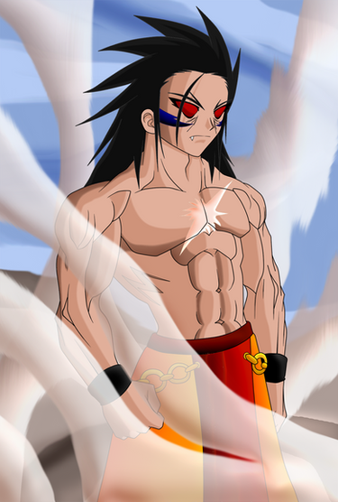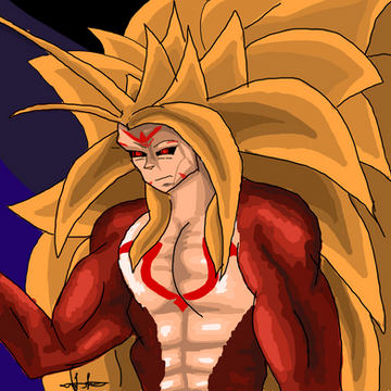 I really like how you did the muscle work on him. It looks really great. Although it's little disappointing that he is build out of elements so cliched to DBZ fandom. The pants, the hair, the scar, the gloves everythinng has been used already in the anime and even more in the fandom community. But still he looks really good.