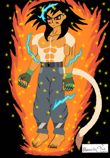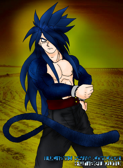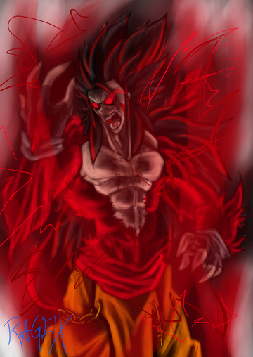 Beast-Rage is actually Rage but more Oozaru-ish and he wears most of his clothes, his hair is just more grown so yah since Rage is actually a half Saiyan itd be hard to avoid that fact.