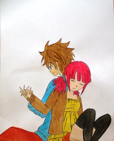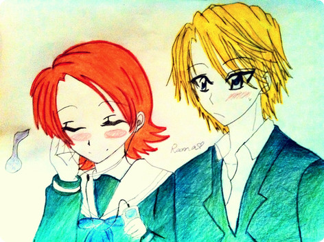 So this is my OC Hideaki together with the girl he likes Ritsu Hikari. She's the Oc of my good friendI know man i saied i'd draw them kissing but i screwed up several times so i decided to do it that way xD