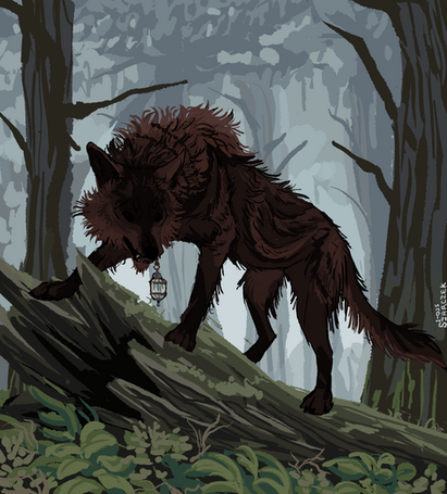 Wanted to share lllustration I did for event in my game. It involves player meeting Okuri-Inu which is yokai who follows people in the mountains, attacking those who appear tired or fall over. Not a good boy unfortunately.