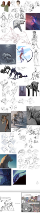 So I realised I can use online collage maker for dumps instead of putting everything together on my own :v Size of works here is a bit random as I had to fit everything in their template but still it was better option for lazy me.So yeah, have a bunch of sketches, unfinished works and studies. Some of them are pretty old like November 2017 but oh well xd I won't describe everything here but feel free to ask!