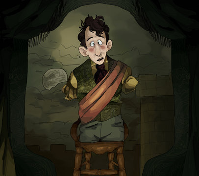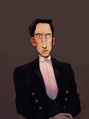 8. john mad at max after she pops him in the nose... this was before i really learned about uniforms so you'll have to excuse the tie and waistcoat.