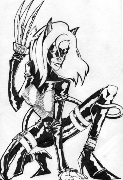 Hell-Cat from the set of AP Iron Man 2 sketch cards.I'll be picking a few of the best cards to recreate as 11X17 eBay pieces and this is one of them.