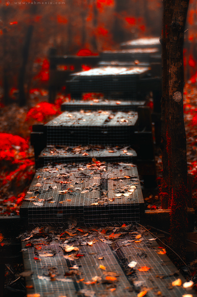 hanging dew looking down at a ground of specs surronded by a dark setting in such a small world only 2 make up 4 a part of a much larger view through the lights n blurs of a simple picture... nice