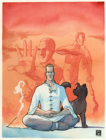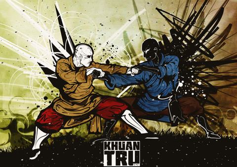 Shaolin monks practicing. I've done this piece as a humble present to my Kung Fu master. Now it decorates the wall of our school.Vector + photoshop for some details and texturing. I wanted the style to resemble a stained glass window. The actual size is 2.30 mtr x 1.10 mtr.