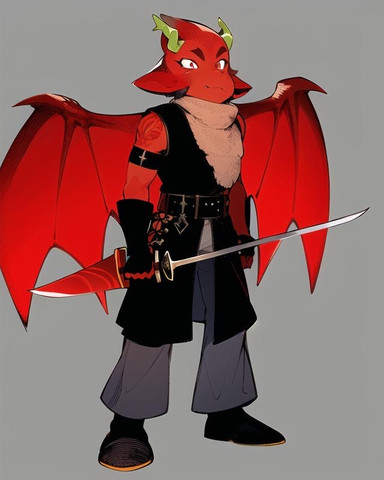 The second of my kobold duo from my D&D game (yes I am playing two characters at the same time). He is a Red Dragonwrought Kobold Fae Warlock with some levels in Scout. A tinkerer and maker of traps and other contraptions as well as gain power from a powerful Fae creature after past events.