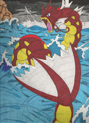 my little bro started collecting pokemon cards and i just can't resist: i have to draw them! so that's the turn of another pokemon that i love, Gyarados!Enjoy!!!