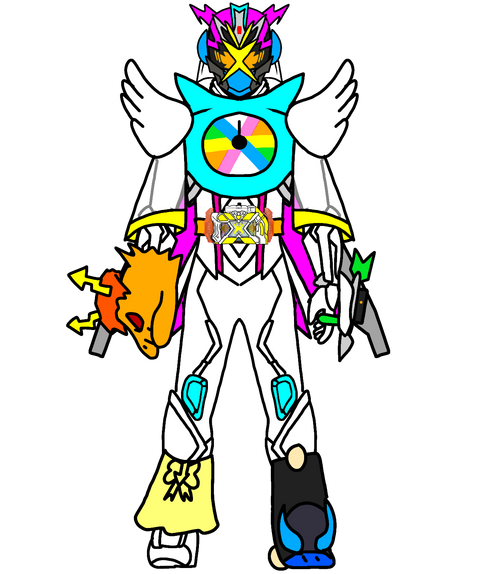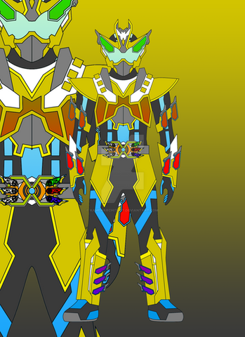 This is my Riders final form utilizing both the Infinity Eyecon and the Eyecon Driver although it's a little different than the regular Eyecon Driver G. The deferens in that on top it has a hole for the Eyecon to be inserted then after placing the Eyecon in you press the Eyecon in and the waiting sound begins then just push the button on the side to transform and also to activate the Omega Attack. Then for the Heroes you push the level to select the hero and it just lights up then you push the Eyecon down to choose the Hero and continue to add more heroes or summon only one by pressing the side button. The iris show in the middle bigger with the help of a mirror inside like the Kamen Rider Drive type Formula Trailerhou (when it show the Shift Cars).