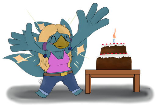 #anthro #avian #bird #birthday #brown #cake #candle #cartoon #chair #character #chocolate #crow #curly #female #girl #hair #happy #oc #original #persona #raven #sona #table #araina #birdsona #originalcharacter