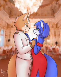 Would it be fair to consider an image of Fara and Fox sharing a dance at some military gala, the way how you drew Fox wearing that white uniform, dancing with Krystal?