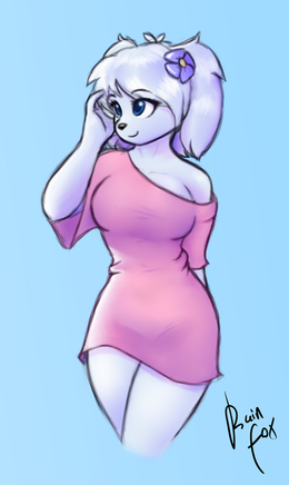 Fara's a little girl but she's got some BIG assets. Like those BIG ears, that BIG bushy tail, and a BIG brain to run her family enterprise, Phoenix Corp! Also she's got an ass that could eclipse the sun. But that's neither here nor there. I love her purple shirt. Purple looks good on her, as does lime green and gray like her outfit in the comic. This came out fantastic and I'm looking forward to seeing that Fay you're working on get finished and posted.
