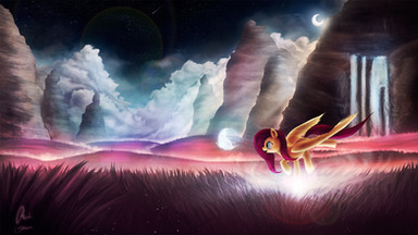 Seriously, I really mean it. This is so utterly gorgeous and artistic that it must be divine in some way o.o Amazing work making this! I love the poetry of the scene and the way Fluttershy is depicted, like a Greek (or Roman?) goddess, a lot!!