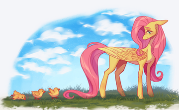The cutest quack! I love when Fluttershy is drawn as a tender caregiver like here