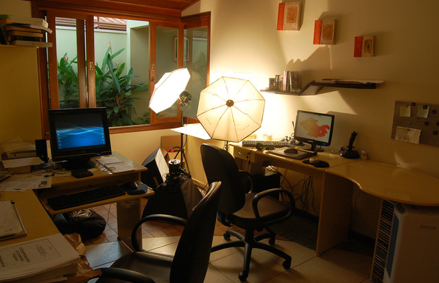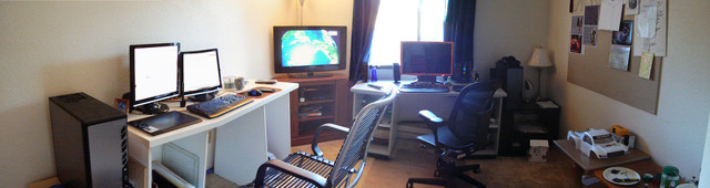 Your workspace is hella tight! Lots of light and it has a 360 feel to it....just sit in your chair and spin to your area.