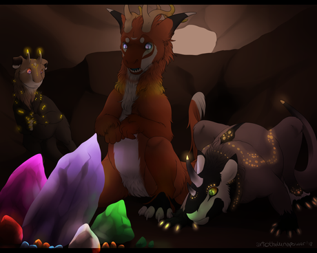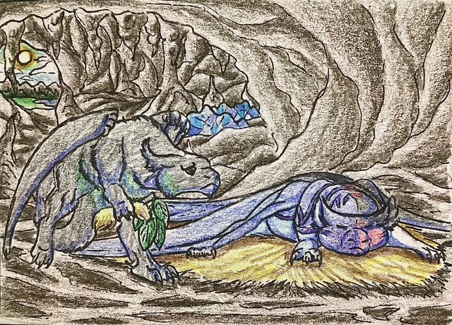 1/2 Training for ScarletHarlequinThe group was trying to go in for some training only to get a cave in. Moon hides in a corner, scared, Blackreach tried to dig her way out, Aeixtath tries to figure out how to get out through the main way, and the handler debates whether to take the coins or not.