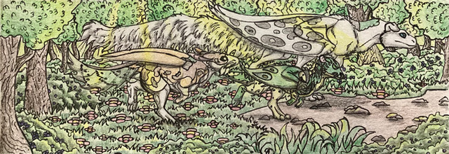 ° Draw or Write your Kukuri being stuck - either they crawled to old tree trunk only to realize it was a horrible mistake, or maybe they were climbing a cliff side and part of it crumbled down? Or maybe they climbed to a too tall tree?