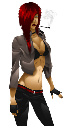 Entry for 's contest to draw his OC 'Busty Lass'First tiem trying vector art, I kinda like how it turned out, although ehr pose looks reeeeeeally bad. shes suposed to have one hand in her back pocket but i think it looks like i forgot to draw her hand. ah well, it wasa good practise.