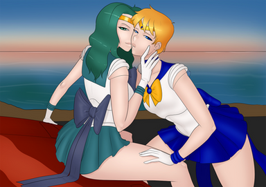Sailor's Uranus and Neptune. Mostly I made this to practice drawing characters in close proximity, and also practice back lighting.This is actually the first time I've ever drawn Neptune and Uranus, which is weird since Neptune has been my favorite Senshi since I was a kid. I mean I'm sure I did some little kid doodles back in the day but I don't count that.